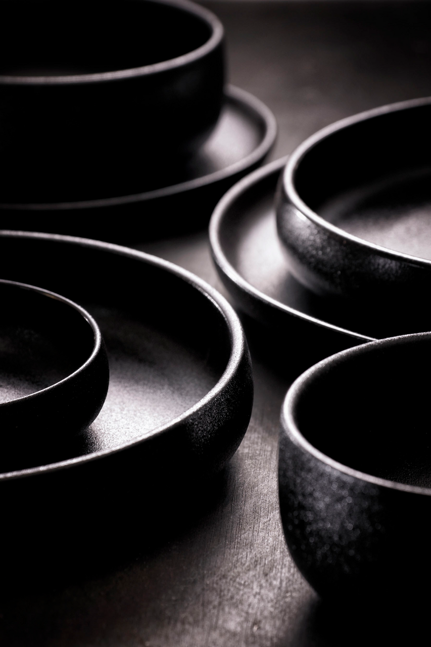 Get a stylish table setting with this porcelain set with matte black color and rough finish. The round shapes and high rim provide a playful twist. This Series combines well with the Cosmic Series. After use, the plate can be cleaned in the dishwasher. The deep plate has a diameter of 21 cm. Porcelain