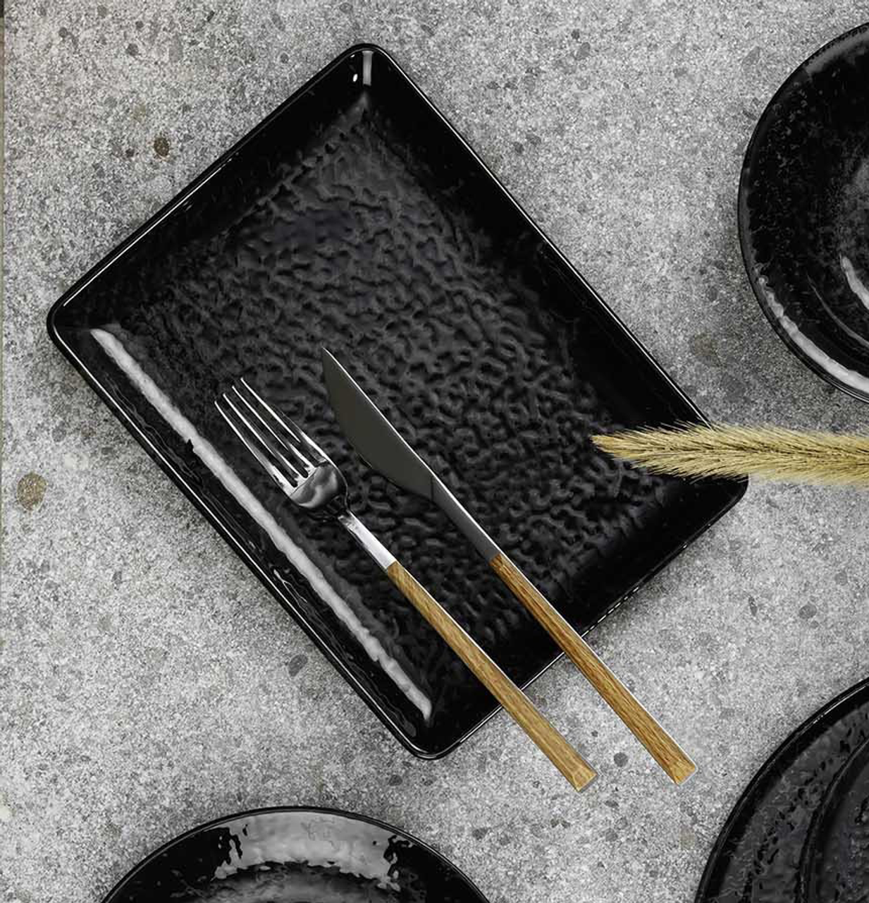 Tahiti is als zwarte parels uit de Pacific. De Series Tahiti is ontworpen met moderne vormen. Het chique zwart met grijze patronen maken ieder gerecht uniek.