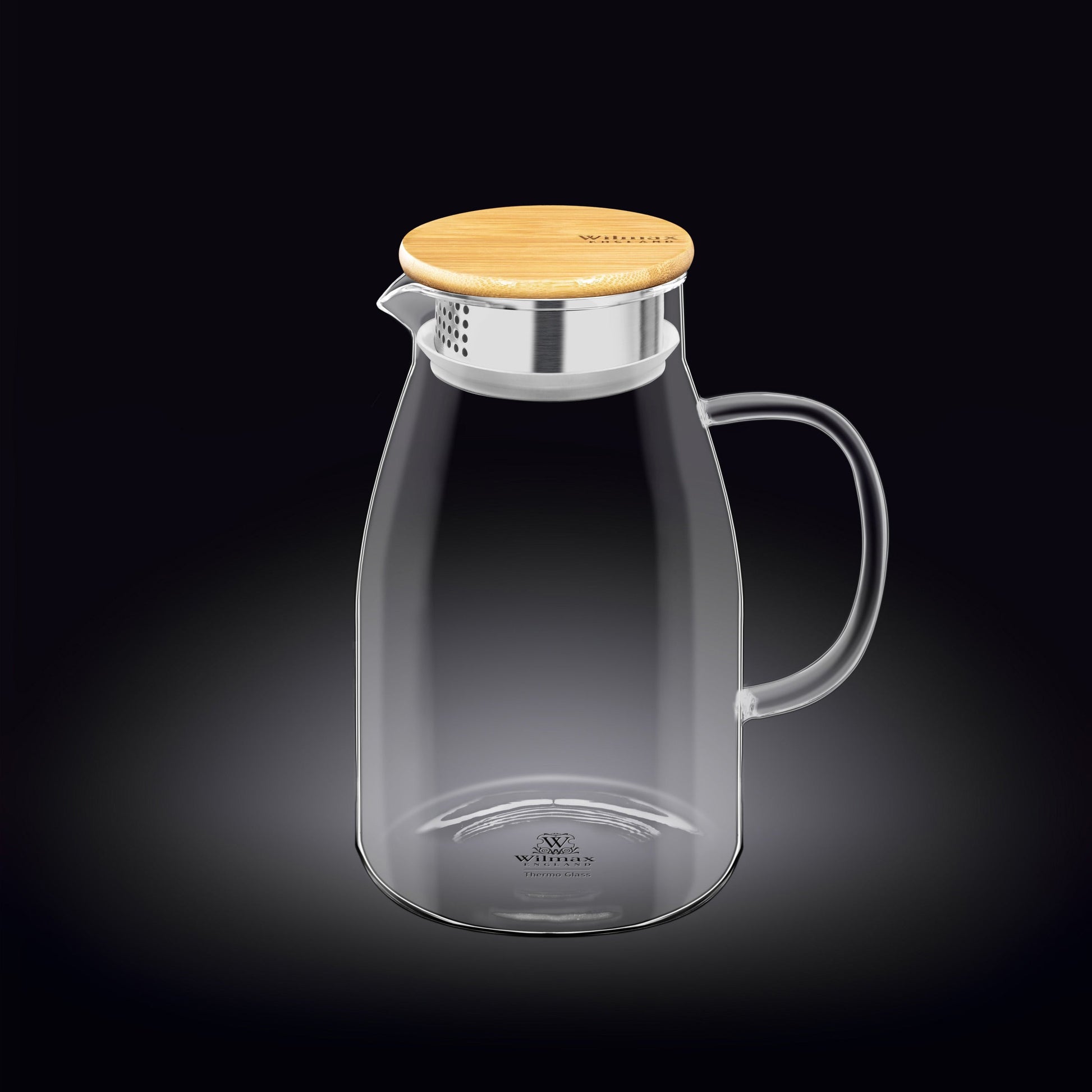 The Wilmax Glass Jug is a stunning piece of glassware that will add a touch of sophistication to your table. This jug is made of high-quality clear thermoglass . Whether you are serving water, juice, iced tea, or sangria, this jug will make your drinks look more appealing and refreshing. The jug comes with a wooden lid that seals tightly to keep your beverages fresh and prevent dust or insects from getting in. The lid also features a stainless steel pour spout that allows you to pour your drinks smoothly and precisely, without dripping or spilling. The jug has a comfortable handle that makes it easy to lift and carry. The jug has a capacity of 64 OZ, which is enough to serve several glasses of your favorite drink. The jug is also dishwasher-safe, making it easy to clean and maintain. The Wilmax Glass Jug is not just a practical item, but also a beautiful accessory that will enhance the look of your table. It is perfect for everyday use, as well as for special occasions and gatherings. The Wilmax Glass Jug is a must-have for anyone who loves to entertain and impress their guests with their style and taste.